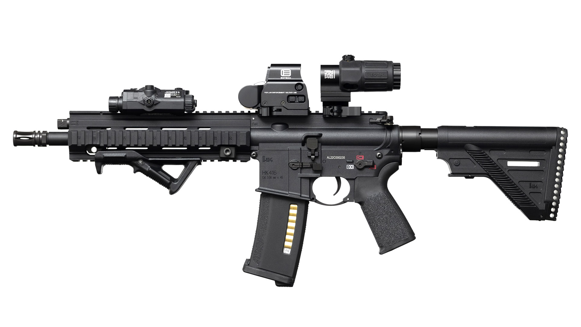 Diese Modell bietet mehr Realismus als die ARP 556 und kann zwischen 1 und 1,5 Joule gespielt werden, indem man verschiedene Federn nutzt. Ein umfangreicher Artikel zum HK416 Sportsline ist hier zu finden. Diese S-AEG ist günstig, aber gut!
